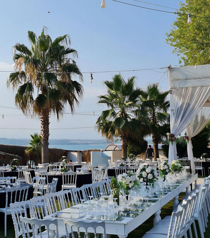 Göl manzaralı - Modern ve sade - Kır düğünü ışıkları - Açık nikah alanı - Fotoğraf çekim alanı - Geniş dans pisti - Canlı müzik / DJ - Sahne ışık sistemi