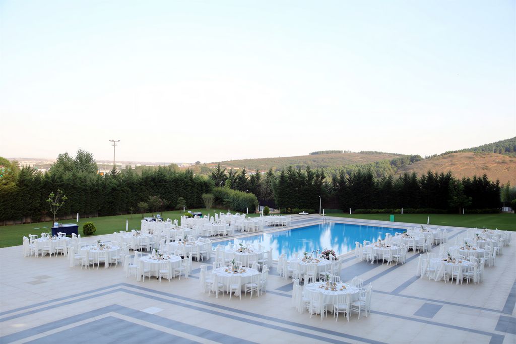 Havuz başında - Farklı konseptler - Kır düğünü ışıkları - Modern ve sade - Gelin yolu süslemesi - Açık nikah alanı - Menü tadımı - Geniş dans pisti - Sahne ışık sistemi - Geniş otopark - Kolay ulaşım - 5 yıldızlı otel
